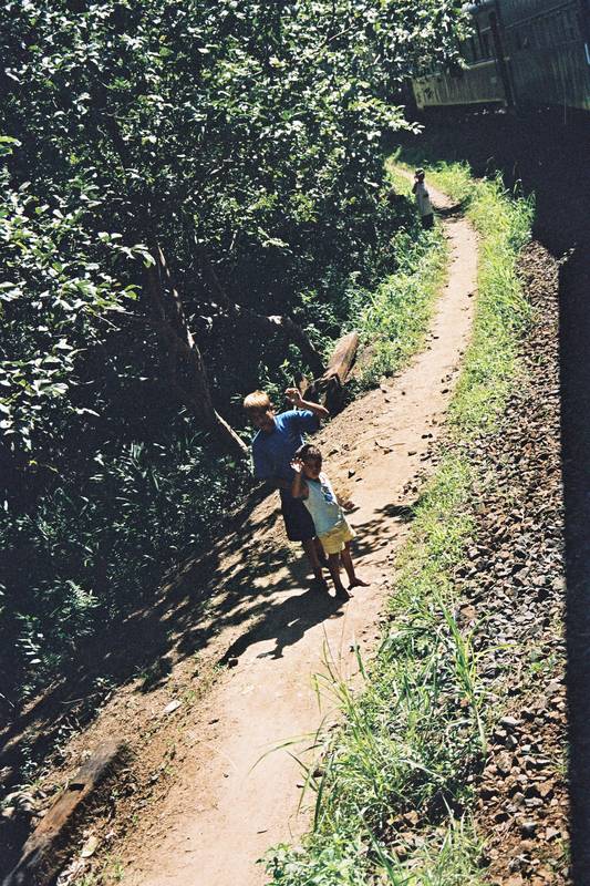 Kids waving at the tourists on the Curitiba-Paranagua train.