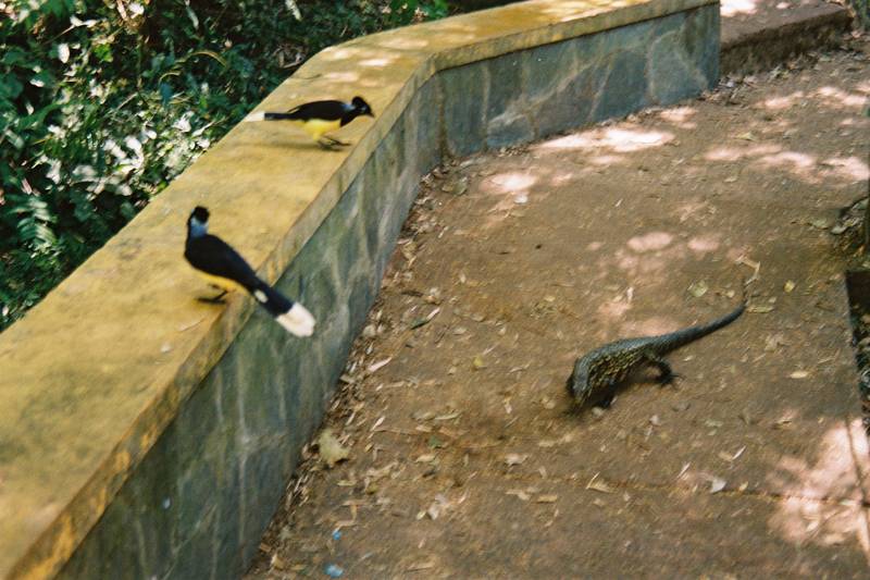 Monitor lizard chasing birds in the Monitor lizard in the IguazŁ National Park.