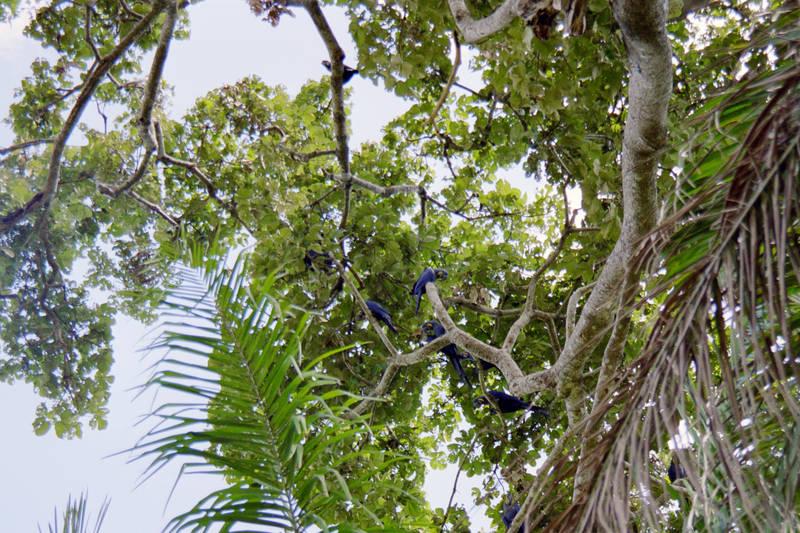 Hyacinth Macaws (worlds largest parrot). There was a group of them living in a big tree just outside our camp.