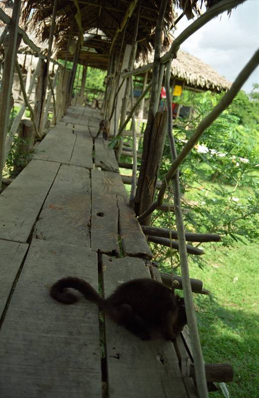 In the nasty "anaconda farm". Very distressed and unhappy monkeys each with a rope around their neck... We reported the place once we were back in Iquitos..hopefully it's closed down now..