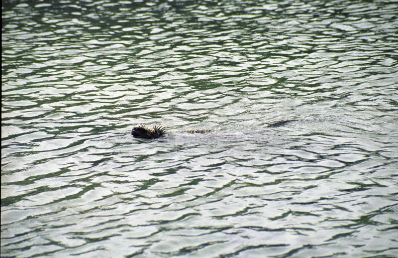 Marine iguana swimming back to the beach to heat up in the sun.