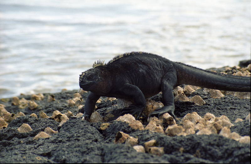 Marine iguana coming back from a swim.