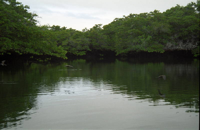 Mangrove and birds in Black Turtle Cove, Santa Cruz island, Galapagos.
