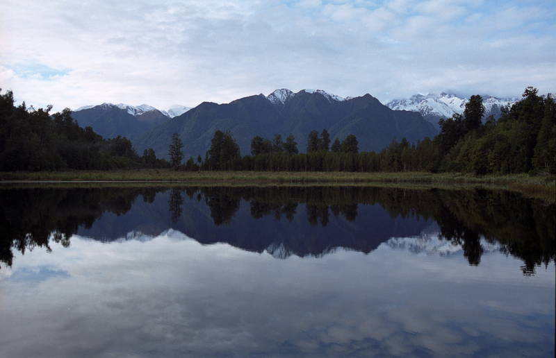 Reflection of the Southern Alps in Lake Matheson, near Fox Glacier.
