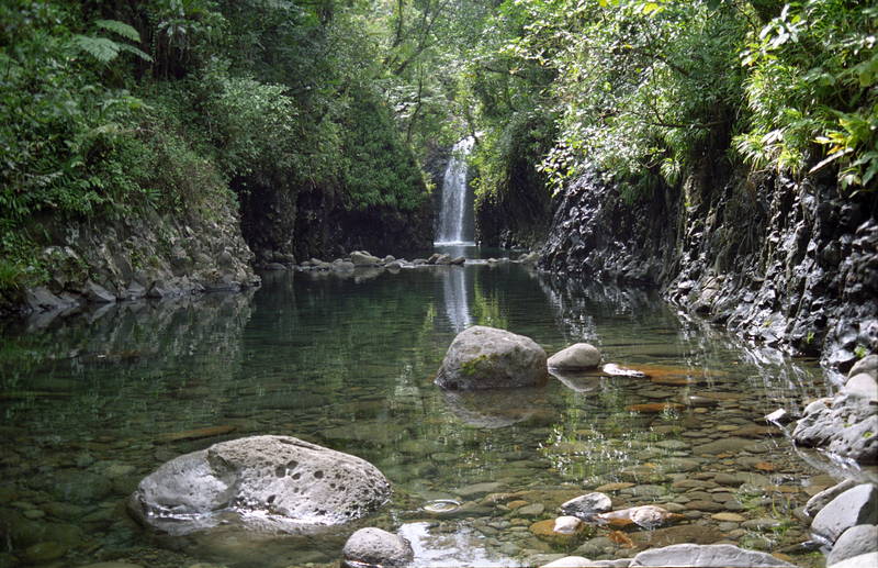 Wainabau Falls at the end of the Lavena coastal walk on Taveuni, Fiji.