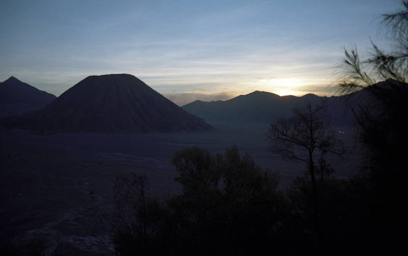 Sunset over the crater landscape.
