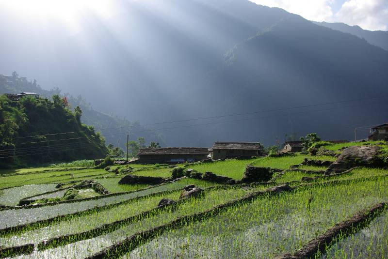 Early morning light over Chhomrong rice fields.