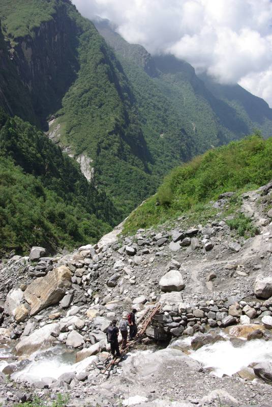 Crossing a river on the way down from basecamp.