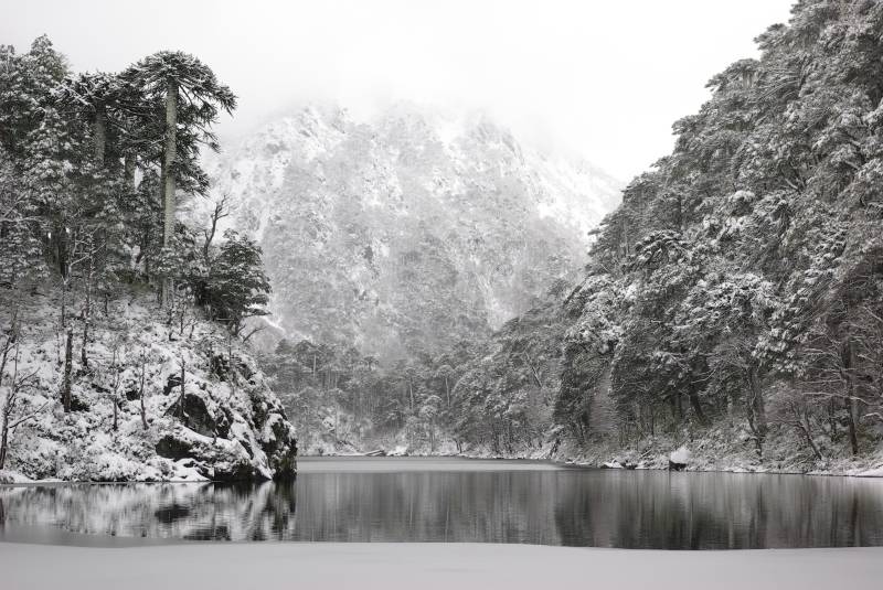 Frozen lake in the Huerquehue national park.