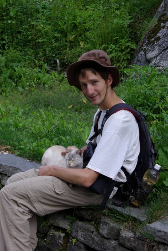 Me with a cat friends in Bamboo in the Annapurna Sanctuary.