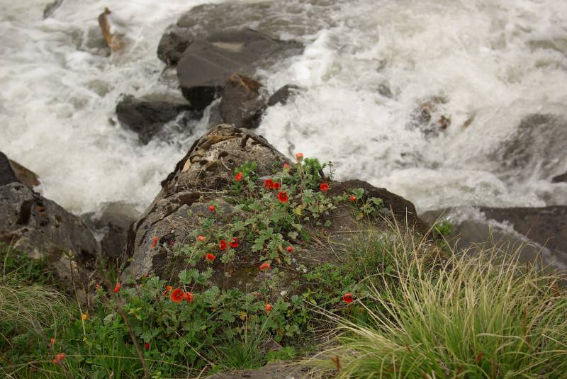 Wildflowers by a stream in the Annapurna Sanctuary.