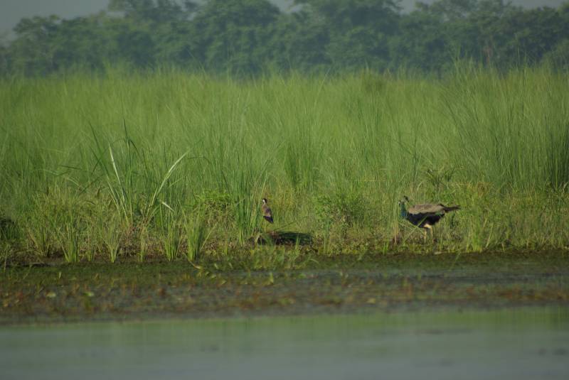 Peacock by the river in Chitwan National Park.