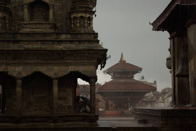 Bhaktapur Durbar Square in the rain.